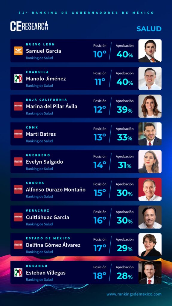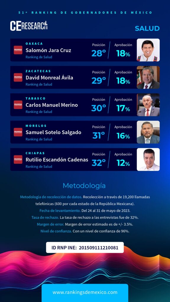 51° RANKING DE GOBERNADORES. SALUD. JUNIO 2024. - Campaigns and Elections México