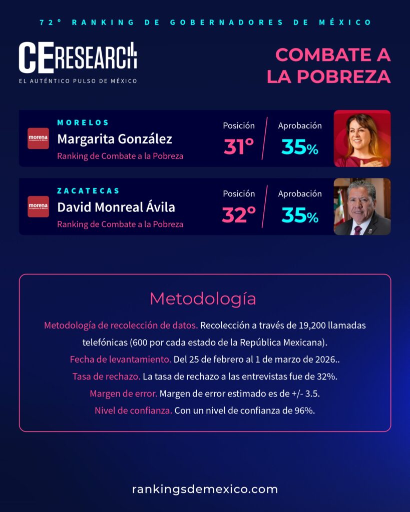 El ranking se calcula con base en el porcentaje de respuestas positivas sobre las acciones del gobierno estatal para combatir la pobreza.