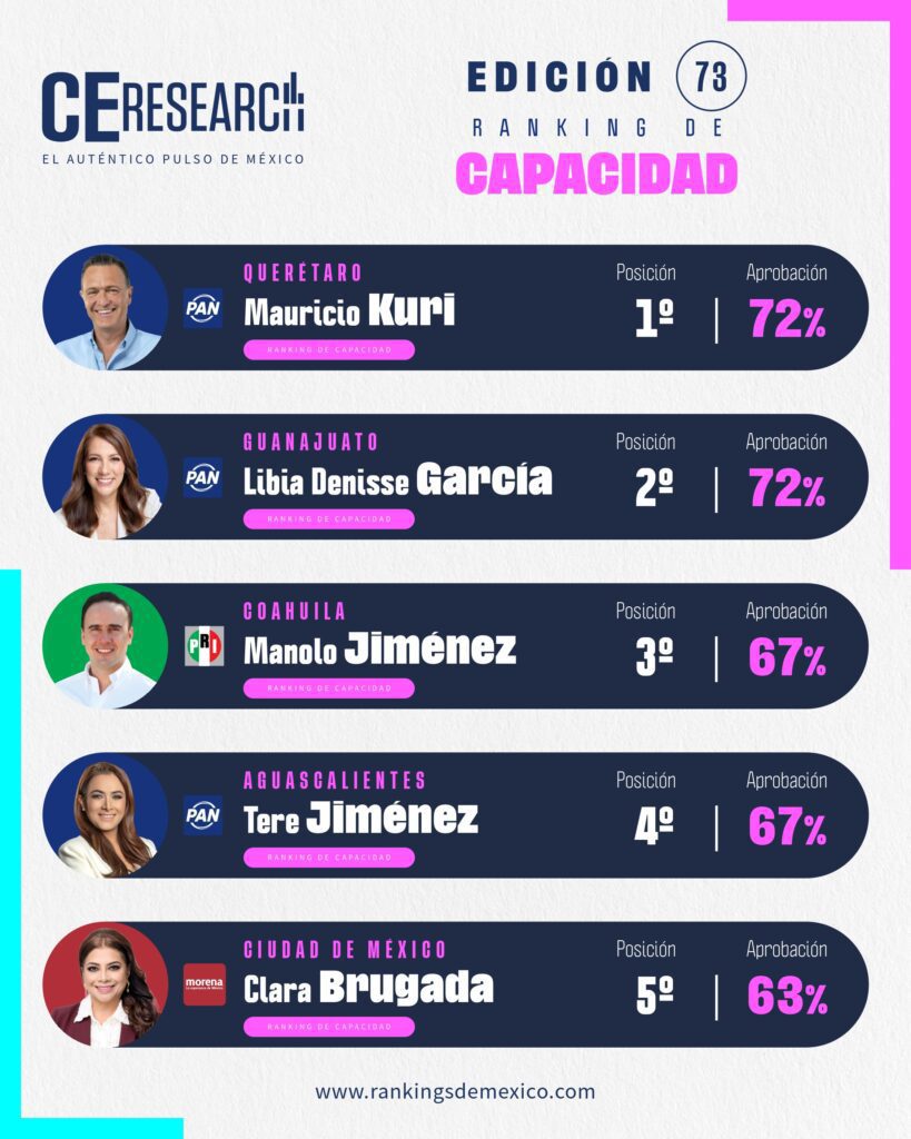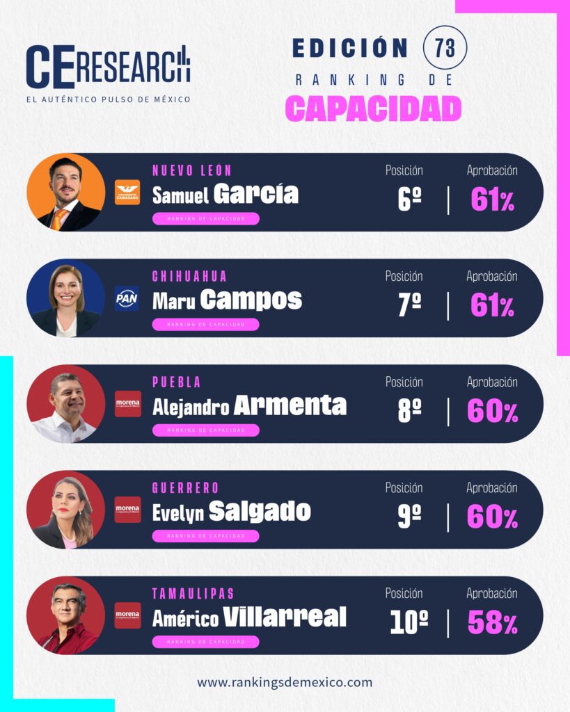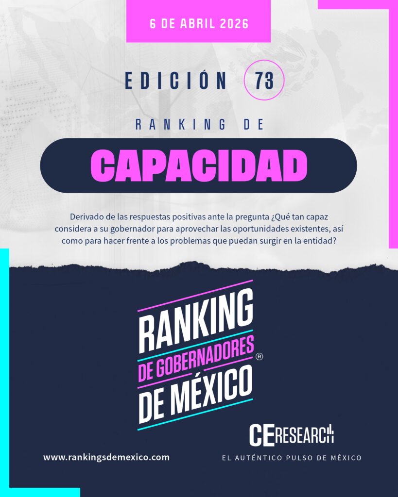 El Ranking de Gobernadores de México – Capacidad (Edición 73) mide la percepción ciudadana sobre la capacidad de los mandatarios estatales para gestionar su estado, aprovechar oportunidades y enfrentar problemas públicos.
