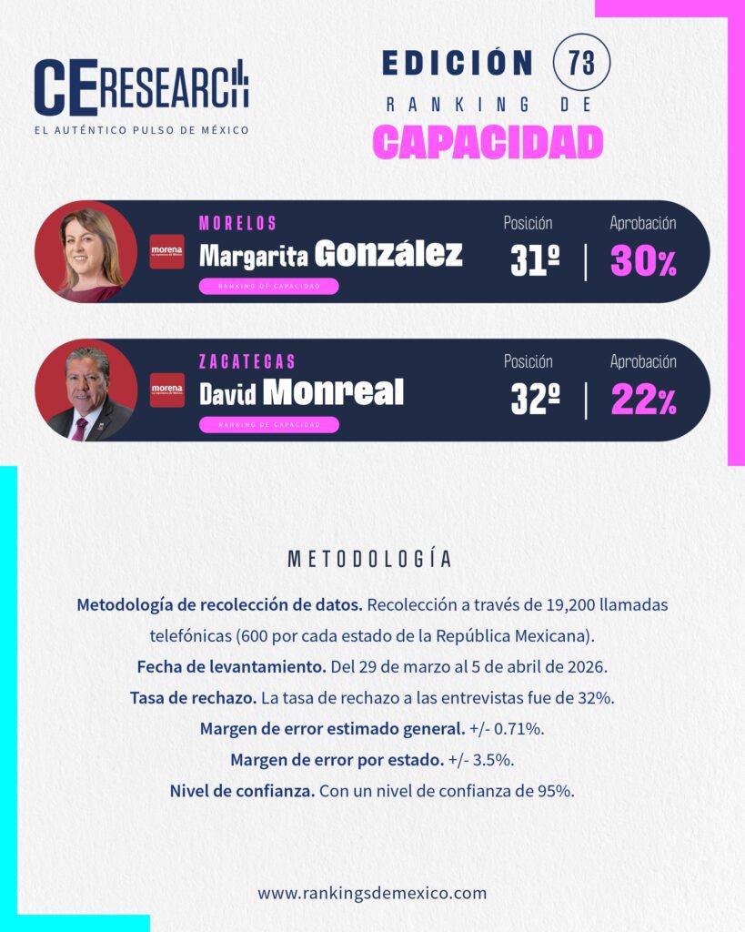 73° RANKING DE GOBERNADORES. CAPACIDAD. ABRIL 2026. - Campaigns and Elections México
