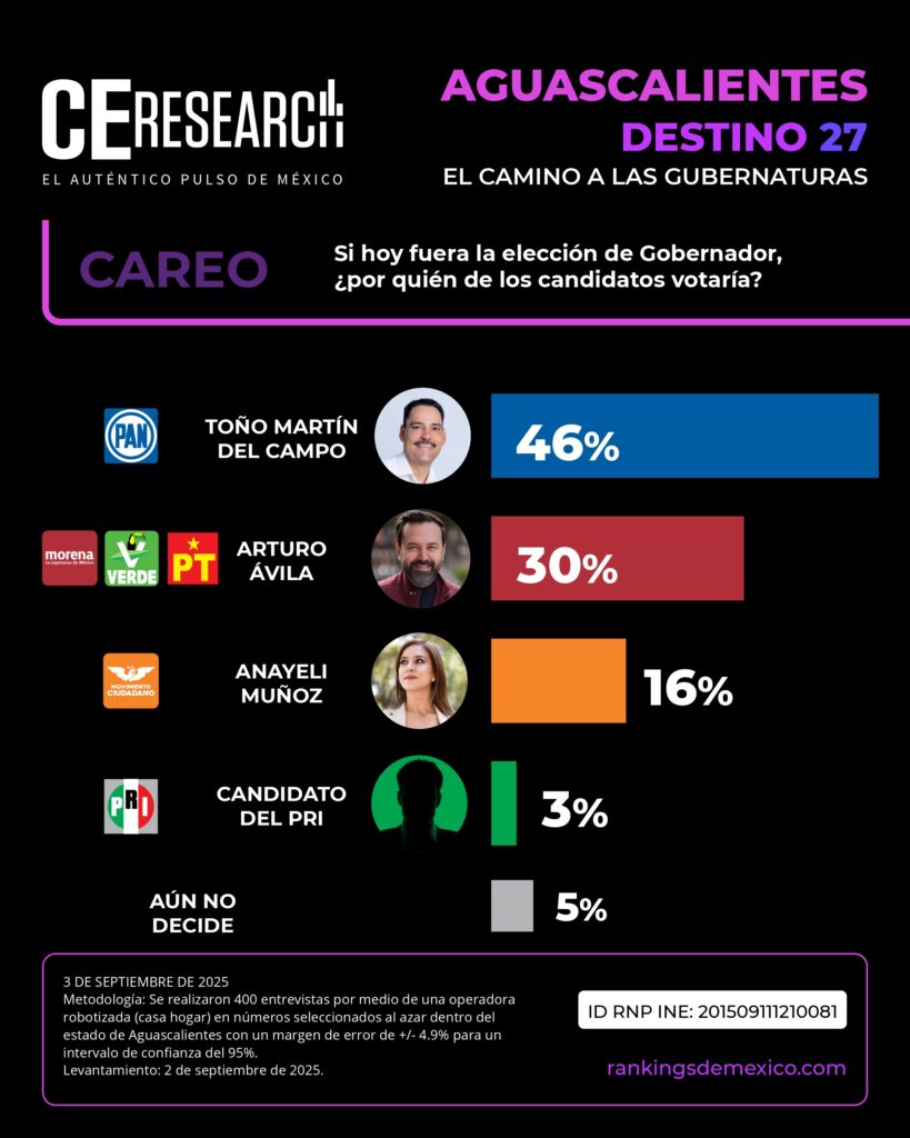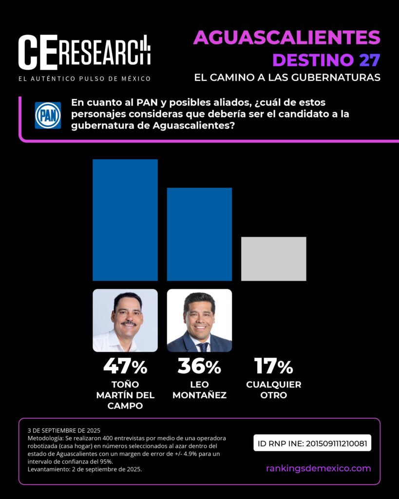 CE Research. 03 de septiembre 2025.- Tierra panista. Se despegan de MORENA y Toño Martín del Campo se afianza como el puntero de la interna panista.