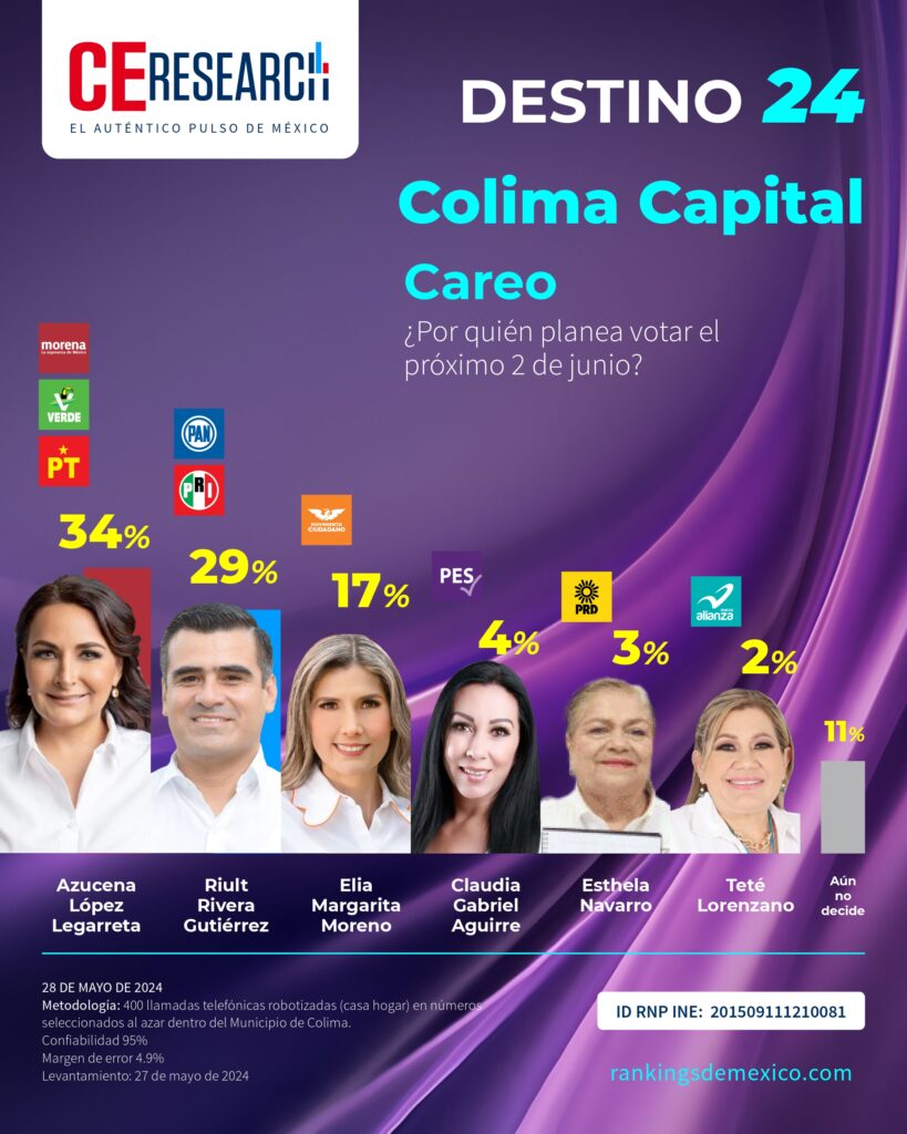 COLIMA CAPITAL. Encuesta rumbo a la alcaldía 2024. 28 de mayo 2024.