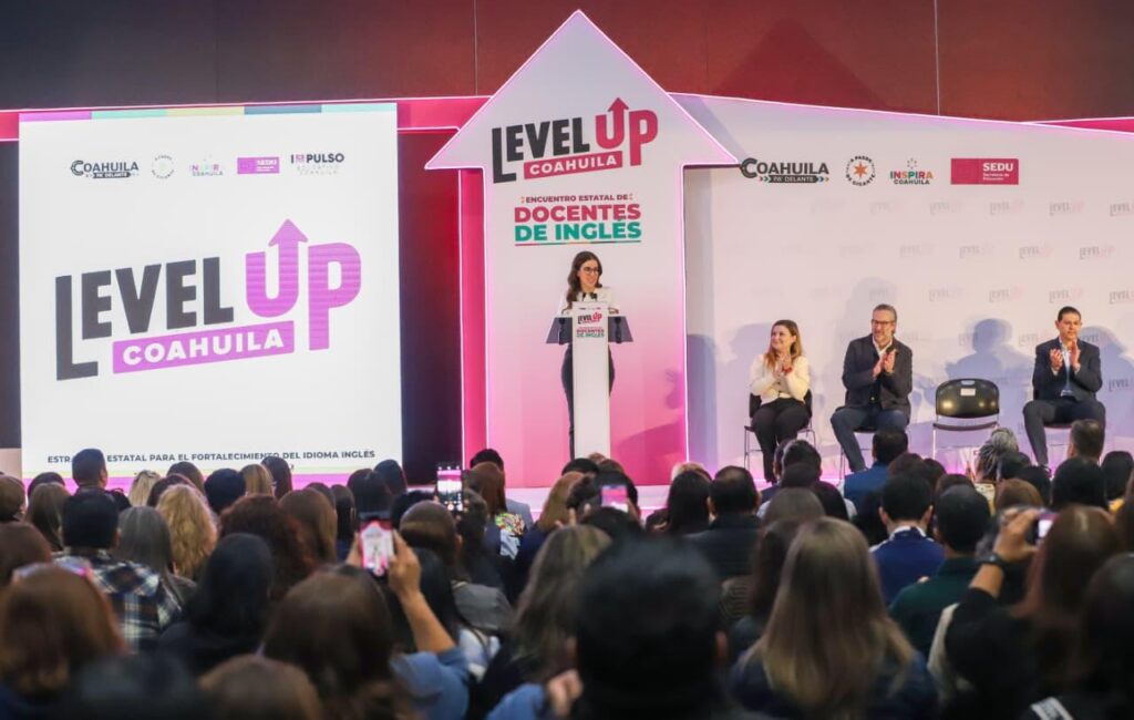 Saltillo, Coahuila de Zaragoza; a 08 de noviembre de 2025.- Como parte del programa integral Level Up, el Gobierno del Estado, a través de la Oficina Inspira Coahuila, y en coordinación con la Secretaría de Educación, llevaron a cabo el Encuentro Estatal de Docentes de Inglés, en el cual participaron más de 500 maestras y maestros de todas las regiones y de los diferentes niveles educativos, desde primaria, hasta universidad.