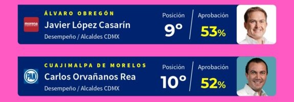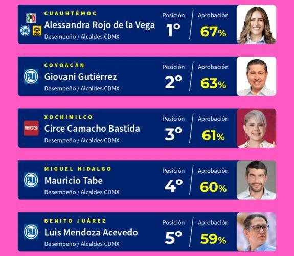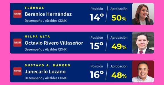 En contraste, los últimos tres lugares de la lista lo ocuparon el alcalde de la Gustavo A. Madero, Janecarlo Lozano; seguido de Octavio Rivero Villaseñor, de Milpa Alta; y Berenice Hernández, de Tláhuac, todos de Morena.