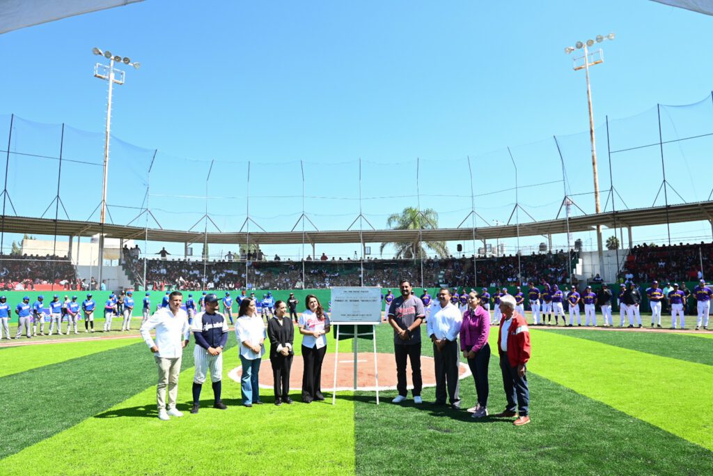 La gobernadora de Aguascalientes, Tere Jiménez, inauguró las obras de remodelación del Parque de Beisbol Revolución en el municipio de Pabellón de Arteaga, en las que se invirtieron poco más de 3 millones de pesos para beneficio de los habitantes de este lugar, ya que este tipo de espacios fortalece el tejido social al convertirse en punto de reunión de las familias.