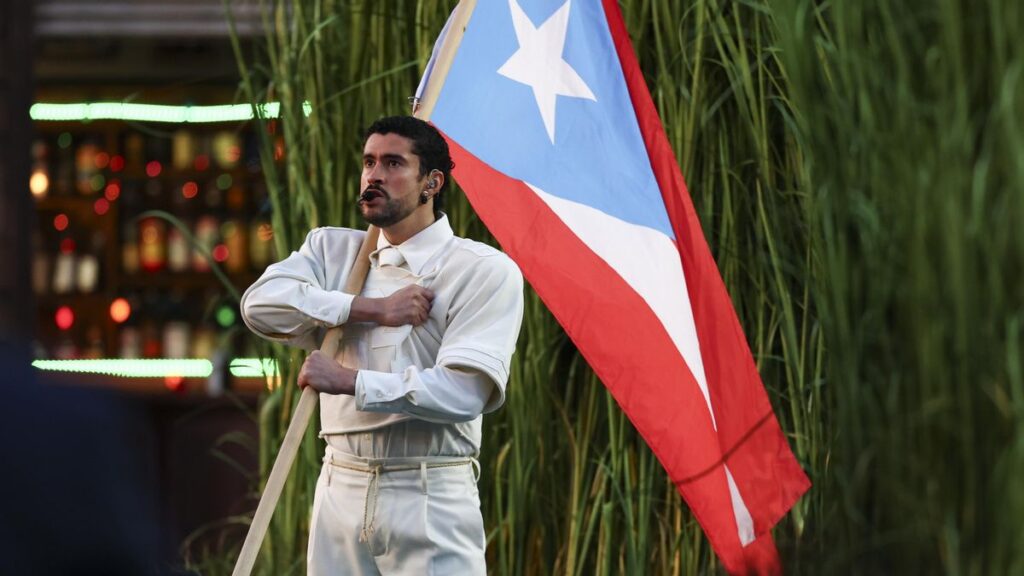El reciente ganador del Grammy incluyó invitados sorpresa, coreografías y una escenografía que exaltaron la identidad y la cultura latinoamericana al cantar en español durante el evento más visto de los Estados Unidos.