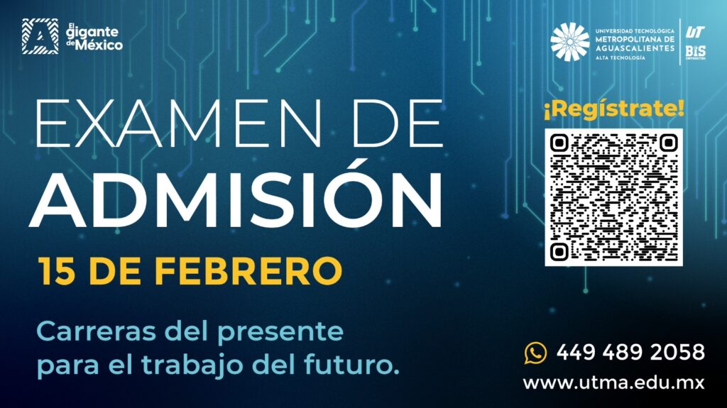 La Universidad Tecnológica Metropolitana de Aguascalientes (UTMA) invita a las y los jóvenes que están por terminar la preparatoria a formar parte de su comunidad universitaria. Las y los interesados tienen hasta el 14 de febrero para solicitar su examen de admisión en el portal www.utma.edu.mx.