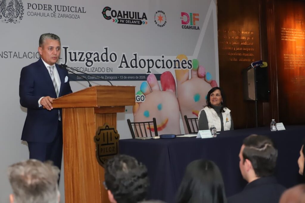 Saltillo, Coahuila; 14 de enero de  2026.- Con el objetivo de fortalecer la impartición de justicia en favor de la niñez y garantizar procesos más ágiles y sensibles, se llevó a cabo la Instalación del Juzgado Especializado en Adopciones, una acción histórica que permitirá reducir los tiempos procesales y evitar la institucionalización prolongada de niñas, niños y adolescentes, priorizando en todo momento su interés superior y su derecho a vivir en familia.
