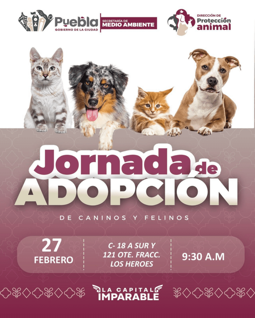“Invitamos a las familias poblanas a sumarse a estos eventos. Adoptar es un acto de responsabilidad y compromiso social que contribuye a construir una ciudad más consciente y solidaria con los seres sintientes”, puntualizó.
