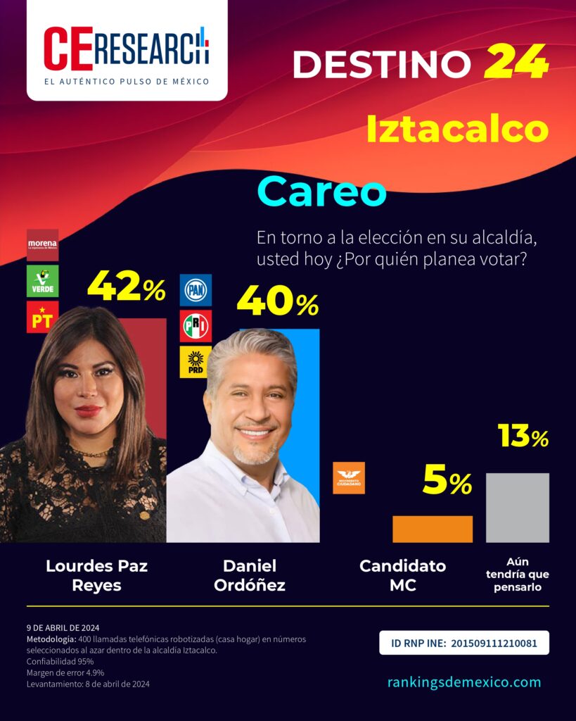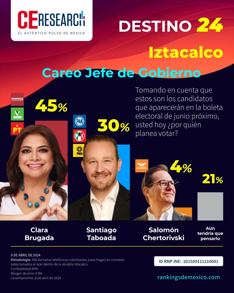 IZTACALCO. Encuesta rumbo a la alcaldía 2024. 02 de mayo 2024.
