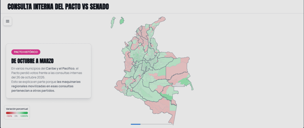 En varios municipios del Caribe y el Pacífico, el Pacto perdió votos frente a las consultas internas del 26 de octubre 2026.