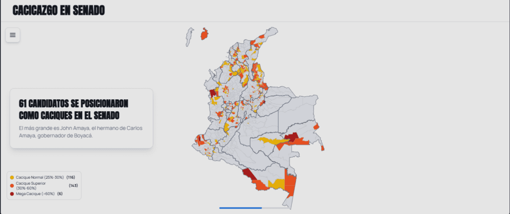 Para identificarlos, La Silla Vacía utilizó una metodología del Grupo de Estudios de la Democracia de la Universidad del Rosario, que define como “cacicazgo electoral” a los municipios donde un candidato obtiene 25 % o más de los votos.