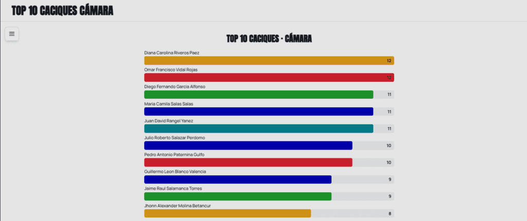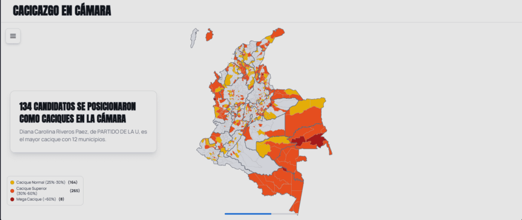 134 candidatos se posicionaron como caciques. Diana Carolina Riversos, de La U, es el mayor cacique con 12 municipios.