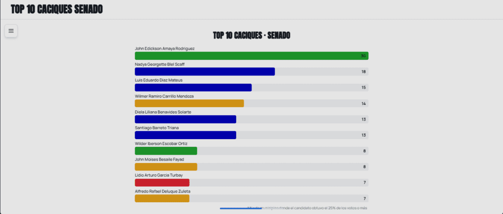 Con 30 municipios donde obtuvo más del 25 % de los votos, Amaya es el mayor cacique del Senado.