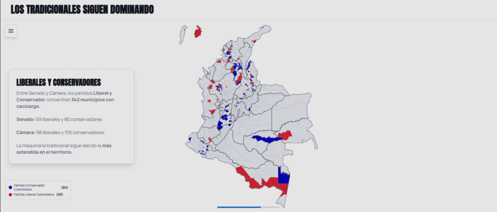 Entre Senado y Cámara, los partidos Liberal y Conservador concentran 342 municipios con cacicazgo.