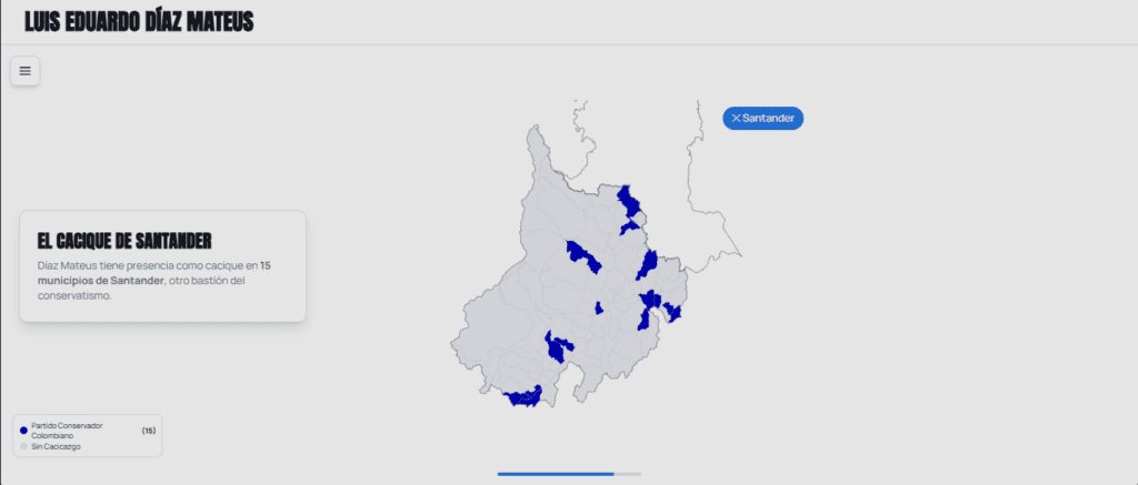 Díaz Mateus tiene presencia como cacique en 15 municipios de Santander, otro bastión del conservatismo.