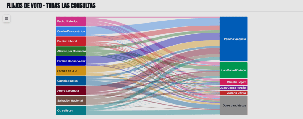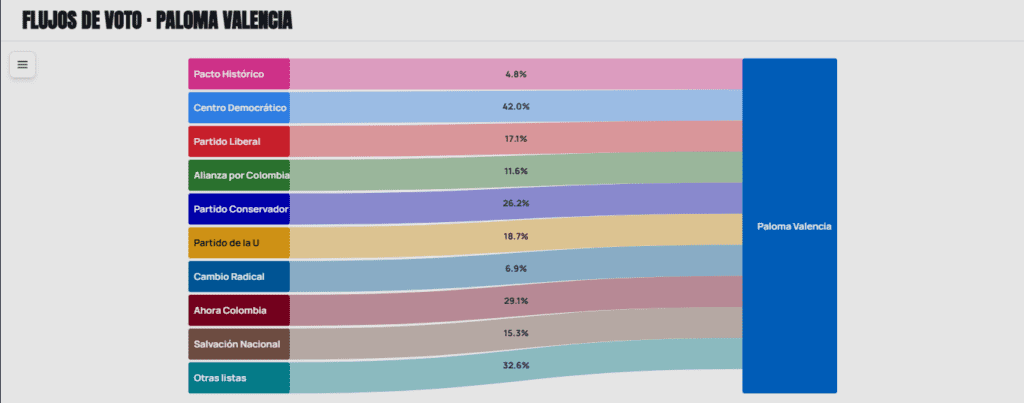 Sus flujos más importantes provienen de Salvación Nacional, la coalición Verde y algunos votantes del Pacto Histórico que participaron en las consultas.