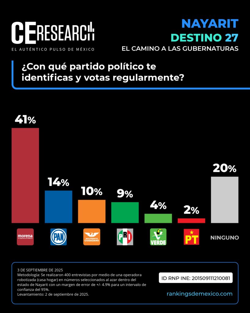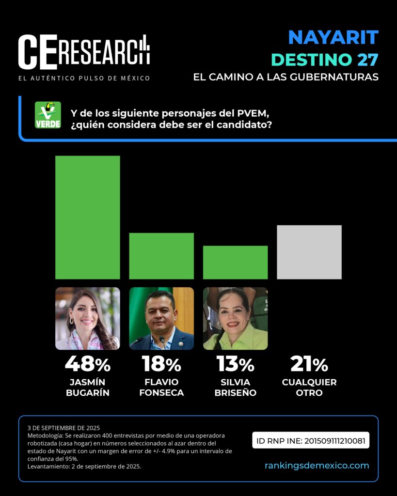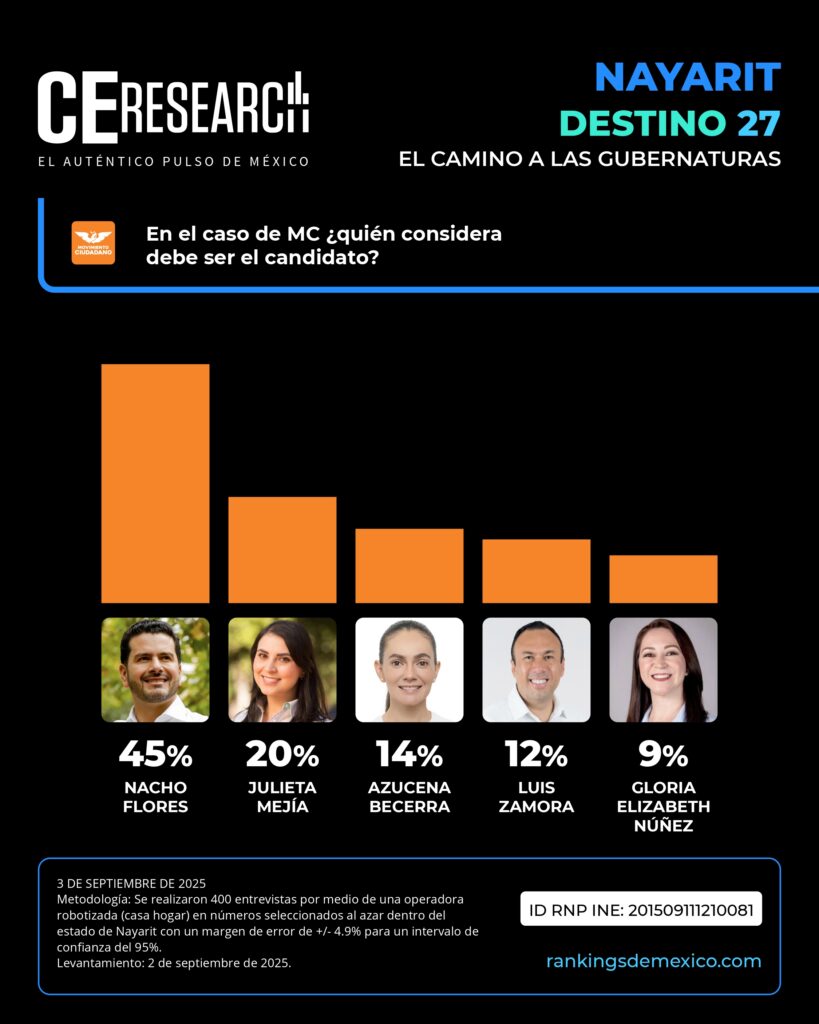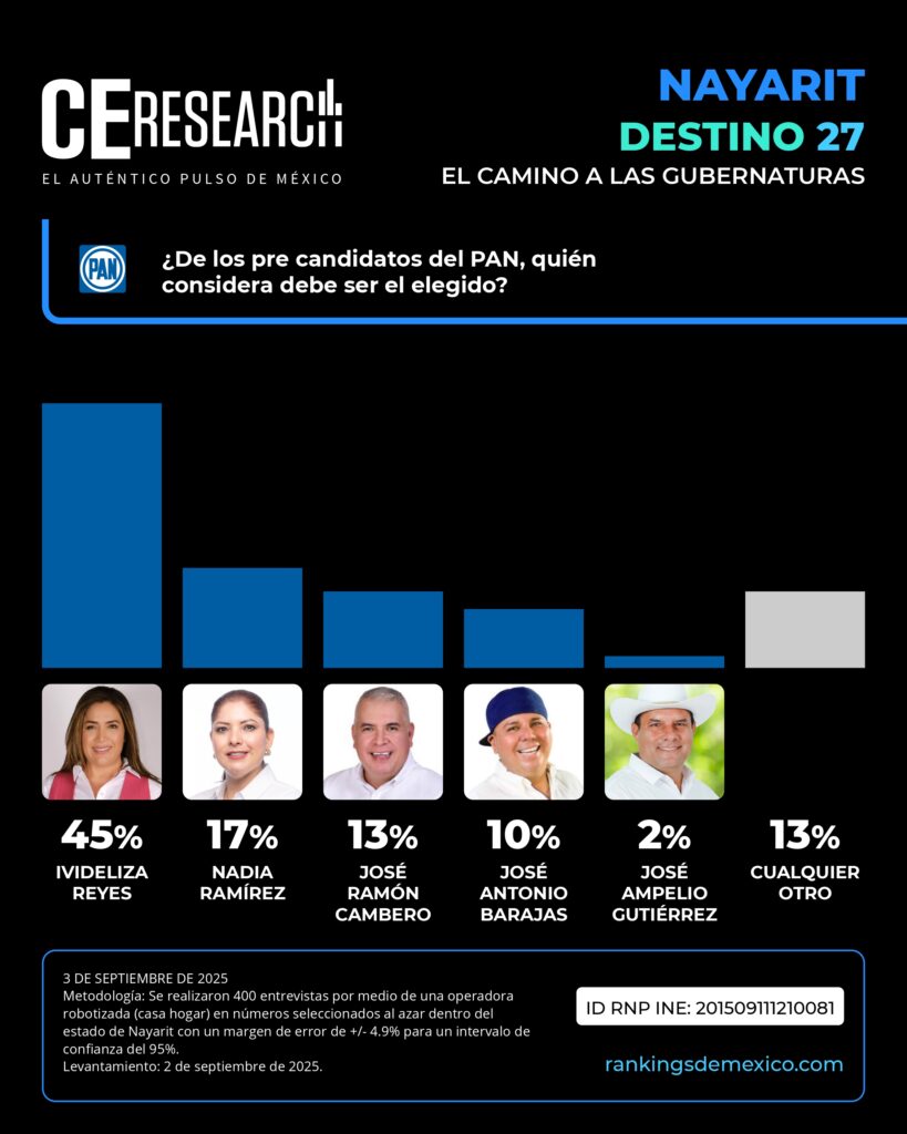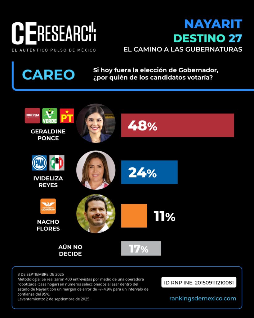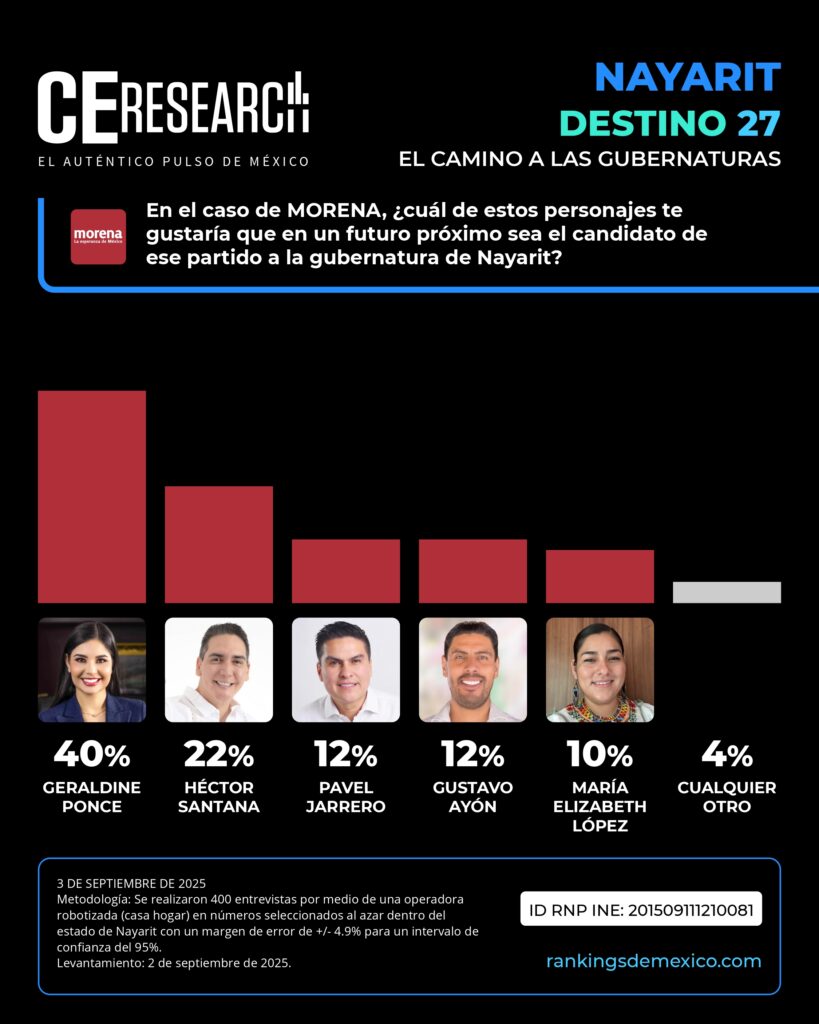 CE Research. 03 de septiembre 2025.– La alcaldesa Geraldine Ponce, cada vez más puntera.