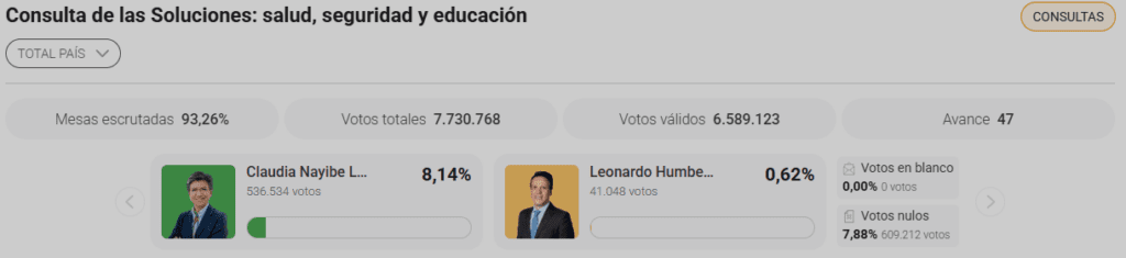 La Consulta de las Soluciones: Salud, Seguridad y Educación ha definido a Claudia López como su candidata, registrando más de 536 mil votos.