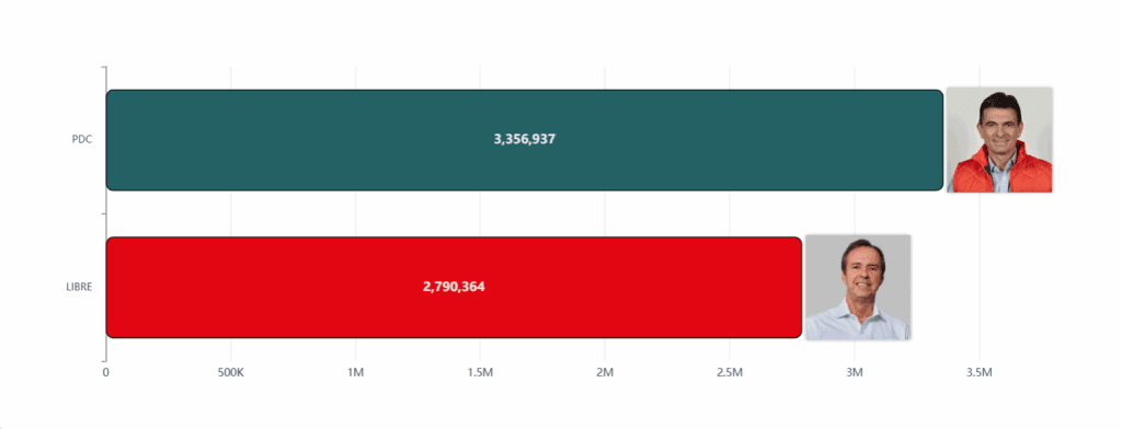 Paz ha acumulado hasta el momento el 54.6% de los votos (3,356,937) frente al 45.3% (2,790,364) de Jorge “Tuto” Quiroga, expresidente neoliberal que buscó volver al poder después de 23 años de haber terminado su mandato. Paz obtuvo los departamentos de Chuquisaca, Cochabamba, Oruro, Potosí y La Paz, este último departamento ganándolo por más de 530 mil votos. Por su parte, Quiroga se impuso en Tarija, Beni y Santa Cruz, en este último ganando por casi 400 mil votos.