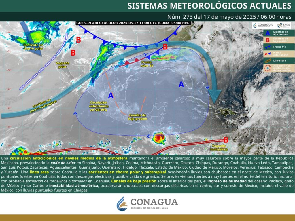 Saltillo, Coahuila de Zaragoza; 17 de mayo de 2025. – La Secretaría de Gobierno, a través de la Subsecretaría de Protección Civil del Estado, informa que sistemas de inestabilidad en el norte del país provocarán lluvias fuertes en gran parte del estado, las cuales podrían estar acompañadas de truenos, relámpagos y caída de granizo. También se esperan vientos fuertes a muy fuertes, con posibilidad de torbellinos o tornados en algunas regiones.