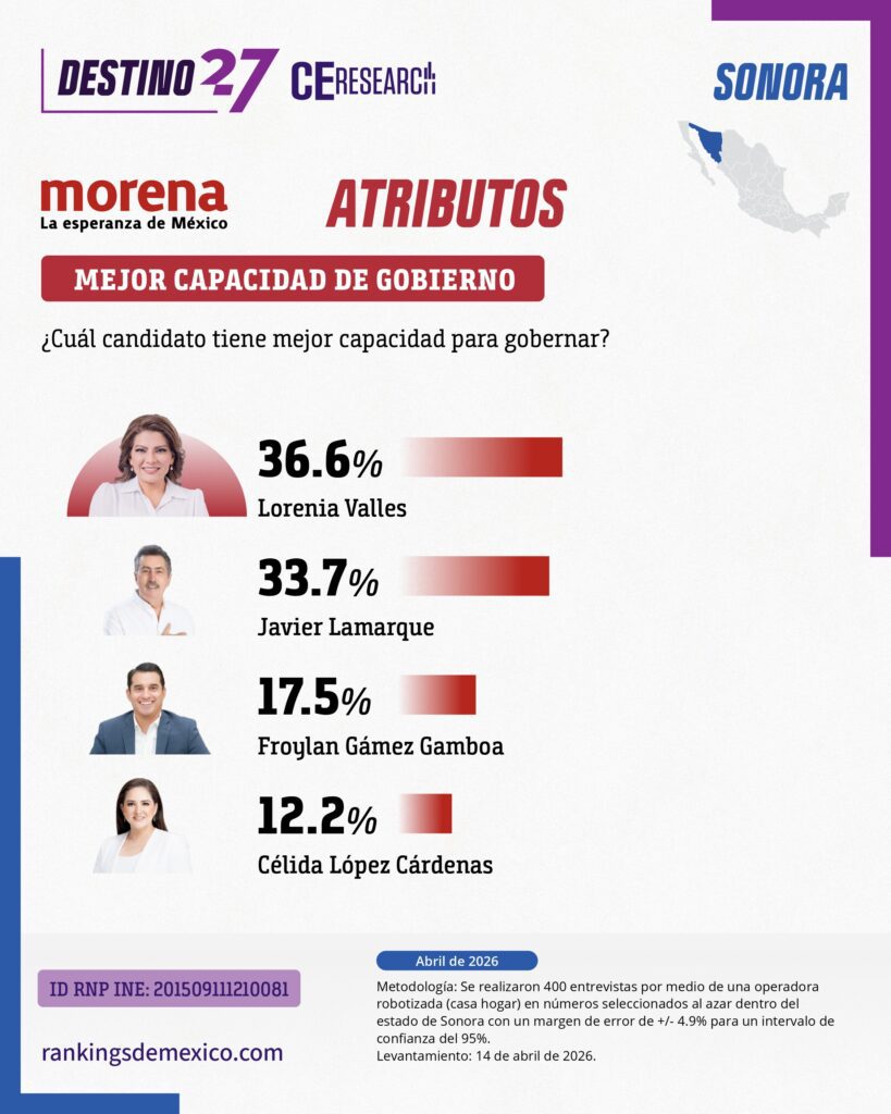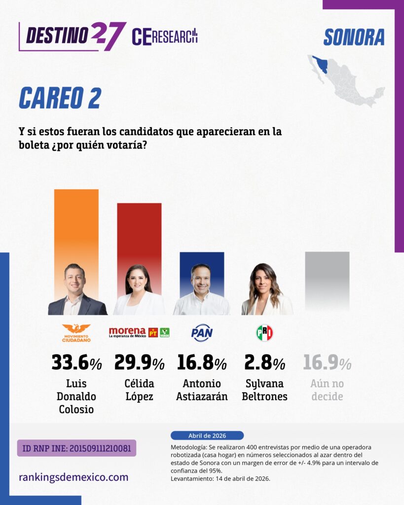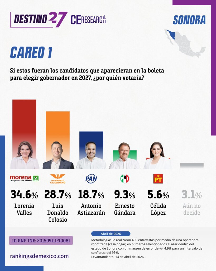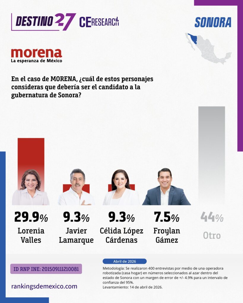 SONORA. Encuesta rumbo a la gubernatura 2027. Abril 2026.