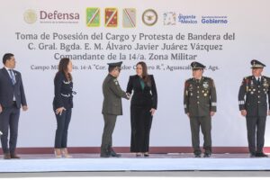 La gobernadora de Aguascalientes, Tere Jiménez, encabezó la toma de protesta del general Álvaro Javier Juárez Vázquez, como nuevo comandante...