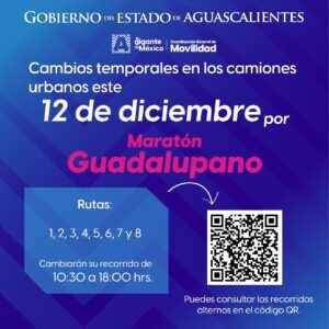 Debido al Maratón Guadalupano que se realizará el viernes 12 de diciembre, algunas rutas de camiones urbanos realizarán cambios temporales...