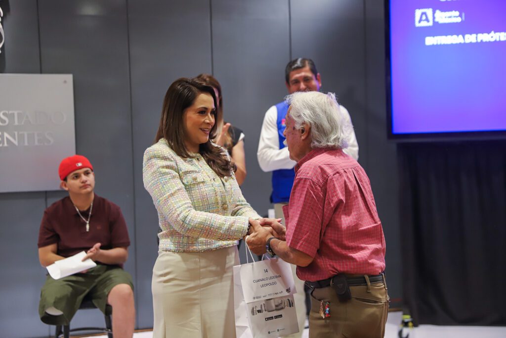 Con el objetivo de mejorar la calidad de vida de las personas con discapacidad motriz o auditiva, la gobernadora Tere Jiménez y la primera voluntaria y presidenta del DIF Estatal, Aurora Jiménez Esquivel, entregaron prótesis y auxiliares auditivos de última tecnología, personalizados y adaptados a las necesidades de cada beneficiario.