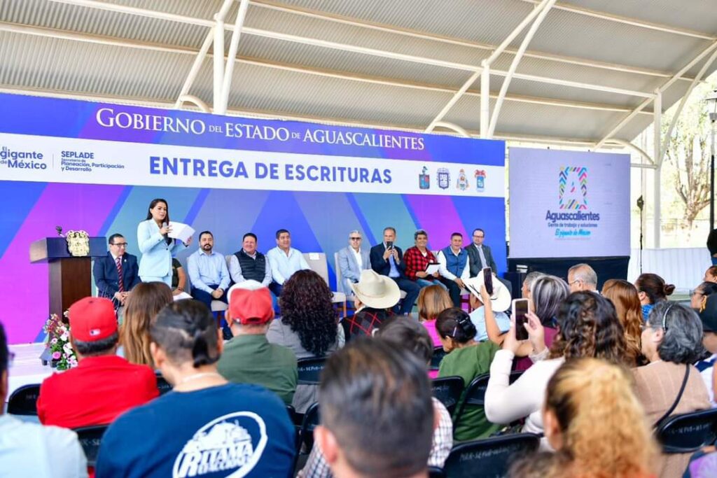 La gobernadora de Aguascalientes, Tere Jiménez, entregó más de mil escrituras y la autorización para la regularización de seis asentamientos humanos irregulares en los municipios de Rincón de Romos, Jesús María, Asientos y Tepezalá, con lo que se brinda certeza jurídica en la propiedad de sus viviendas a cientos de familias que esperaron más de 30 años para lograr este objetivo.