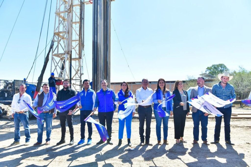 La gobernadora de Aguascalientes, Tere Jiménez, dio el banderazo para iniciar la perforación de un nuevo pozo de agua en Granjas Fátima, que garantizará el suministro constante del vital líquido en beneficio de 250 productores ganaderos.