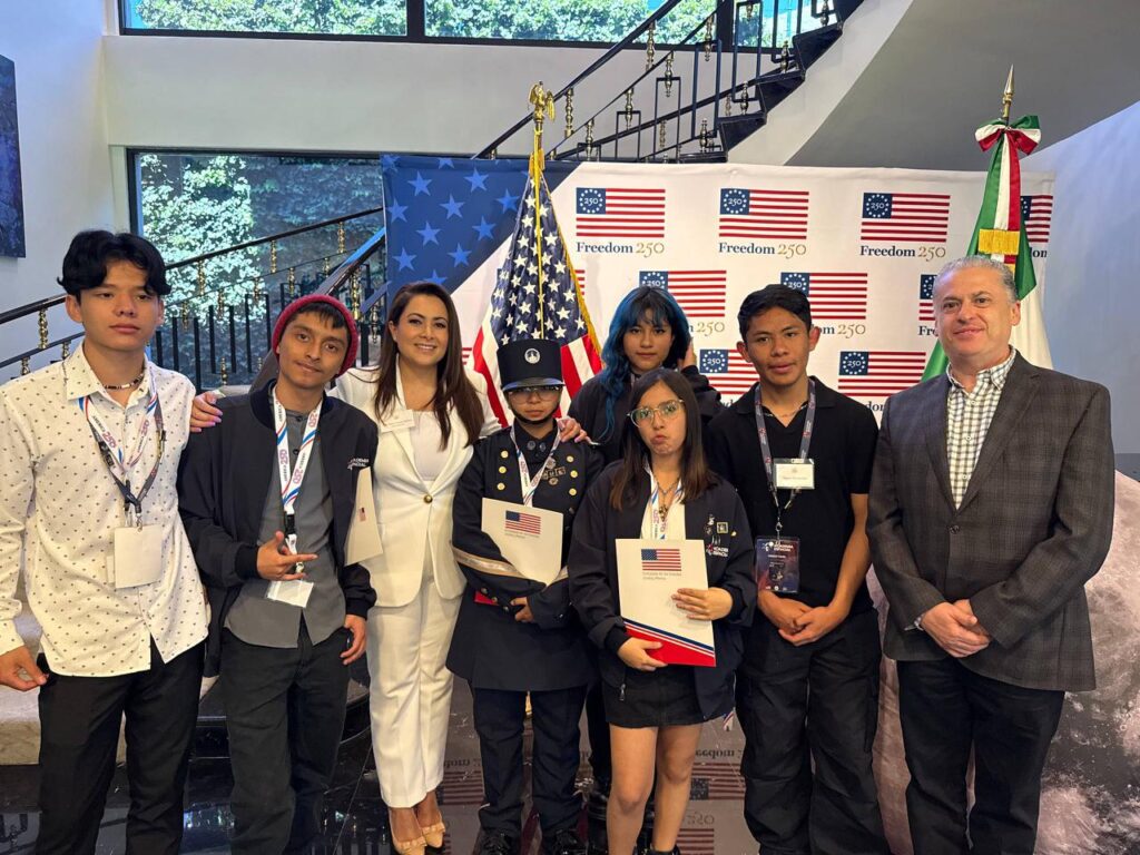 Desde la Embajada de Estados Unidos en México, la gobernadora de Aguascalientes, Tere Jiménez, participó en la ceremonia en la que se reconoció a 32 estudiantes de todo el país, entre ellos ocho jóvenes hidrocálidos que viajarán a la NASA en abril de 2026.