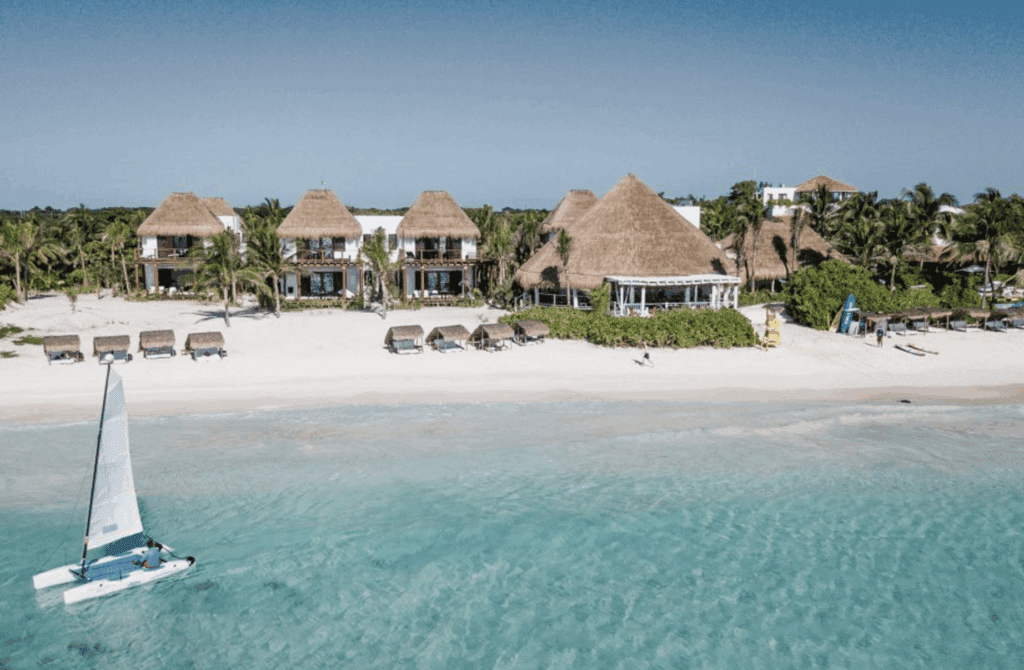 Lujo de primer nivel. Antigua casa de vacaciones de una duquesa italiana, este pequeño refugio boutique en la playa Xpu-Ha de Tulum es uno de los alojamientos más privados e íntimos de la Riviera Maya. Adquirido en 2014 por el productor de Hollywood Kevin Wendle, se ha transformado en un elegante refugio junto a la playa, donde los huéspedes reciben sandalias Havaianas al registrarse y la mayoría usa traje de baño desde el amanecer hasta el anochecer. Lejos del ajetreo urbanístico de Playa del Carmen, este remoto refugio playero es un mundo aparte.